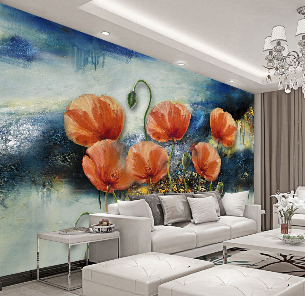 Fotobehang Botquets van dunne zomerrode papavers (artikel a94456 ) uit categorie Waterverf fotobehang