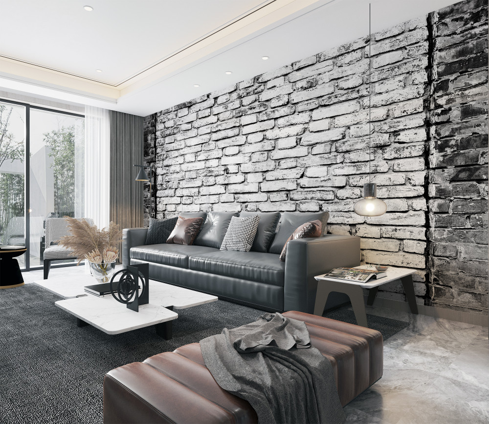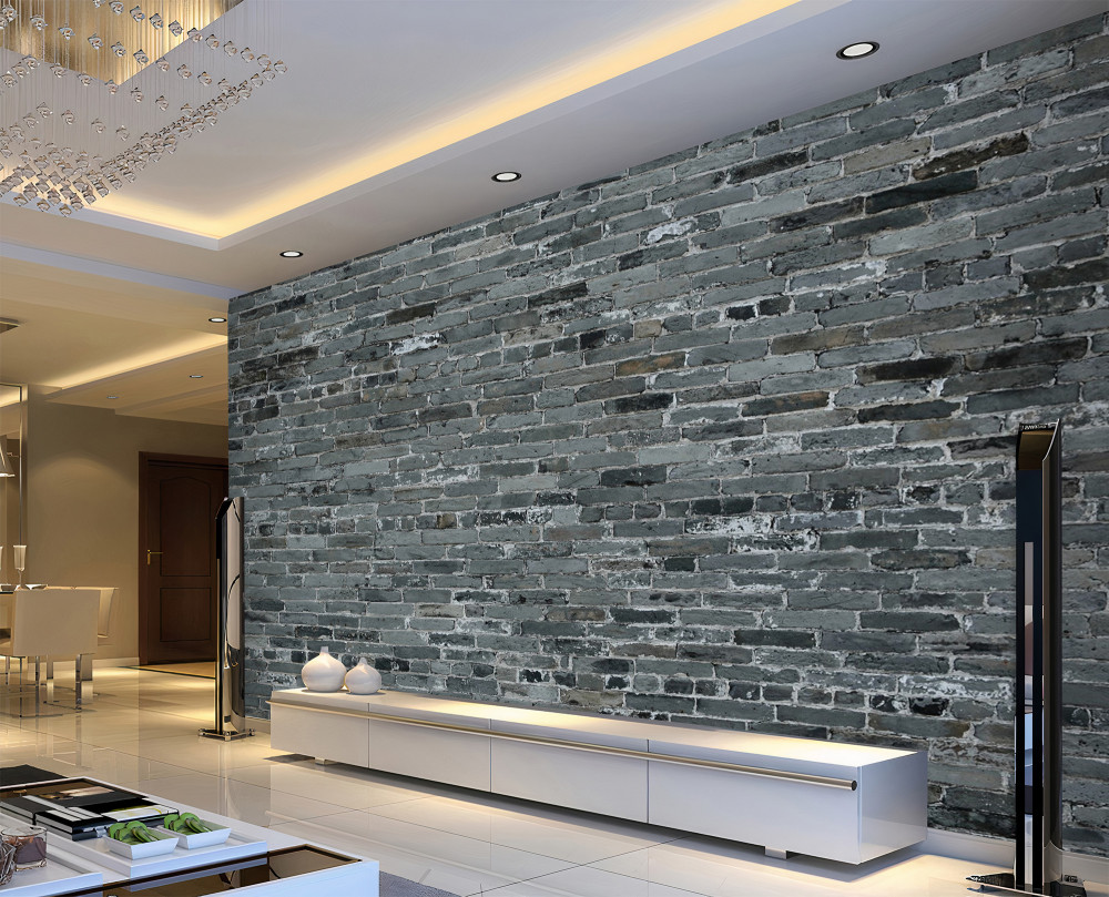 Fotobehang donkergrijze muur gemaakt van bakstenen
