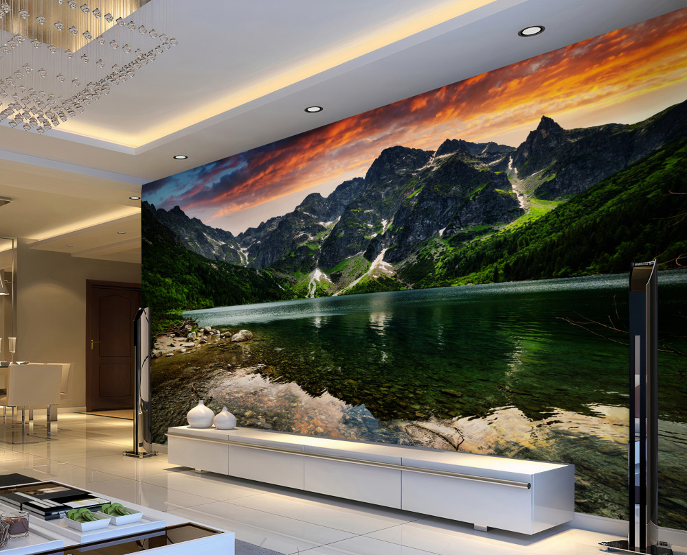 Fotobehang Zonsondergang op een bergmeer en de toppen van het Tatra -gebergte