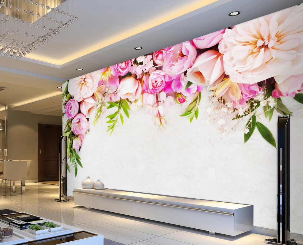 Fotobehang delicate roze bloemen op lichte achtergrond