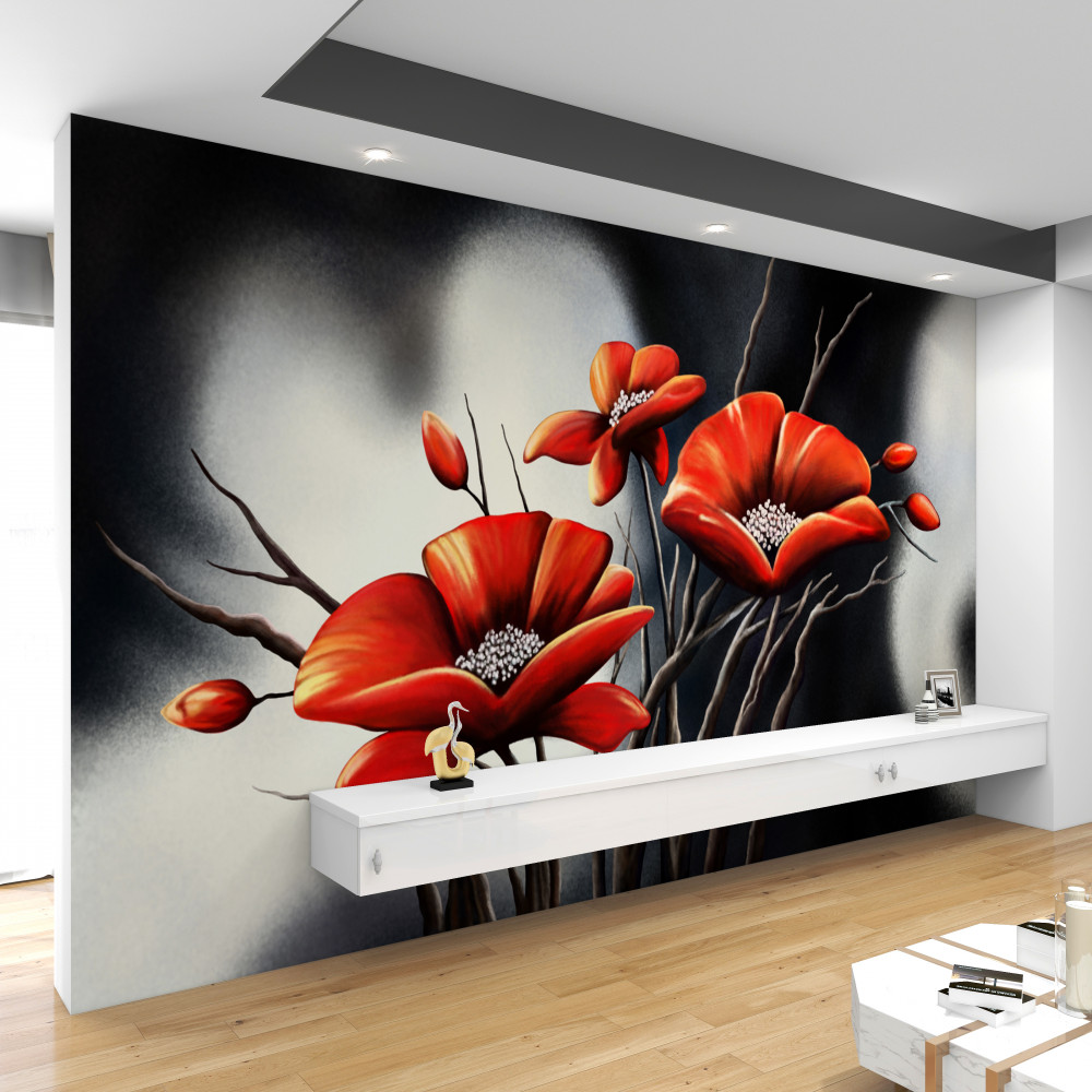 Fotobehang Chique rode papavers op een abstracte achtergrond