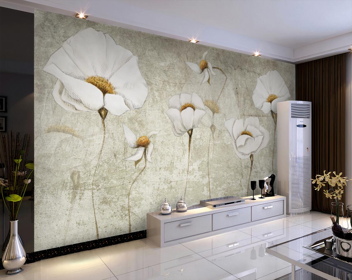 Fotobehang Rode bloemen op witte achtergrond zoals sneeuw