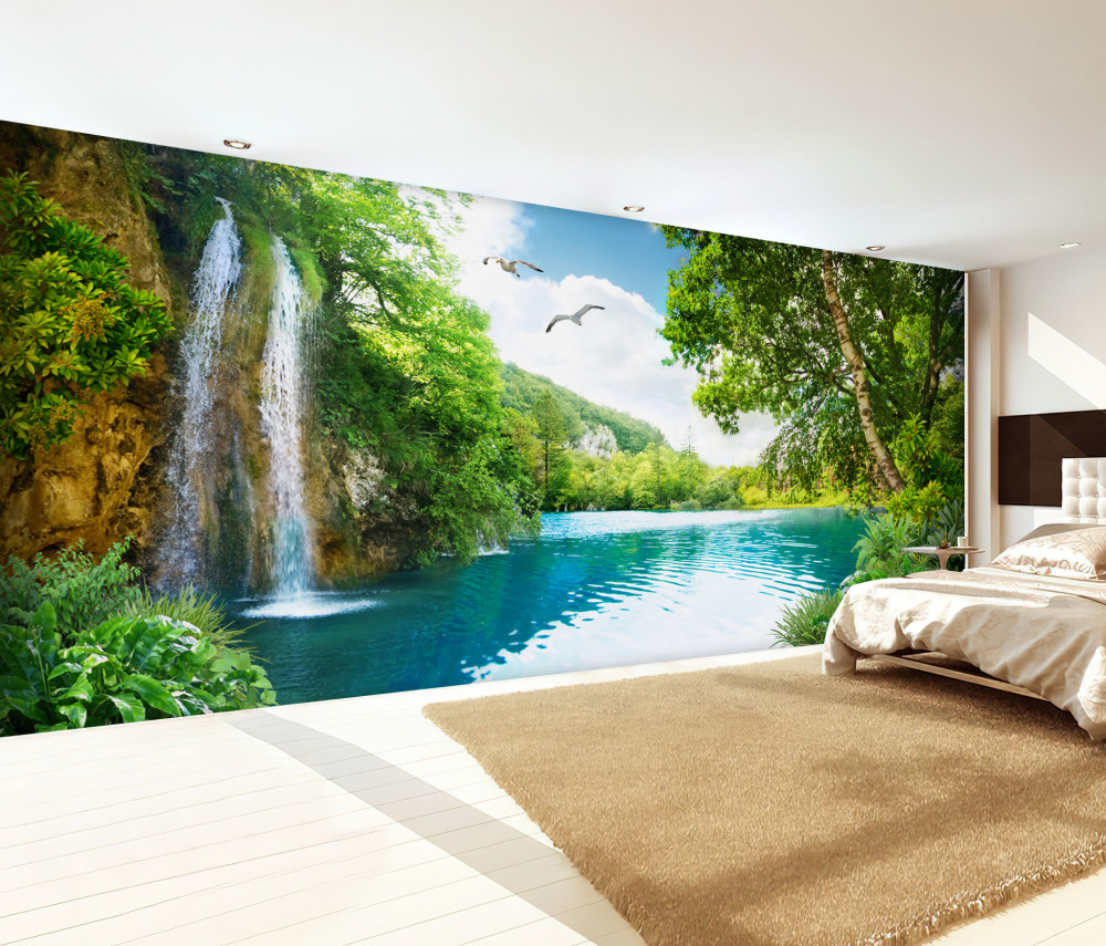 Fotobehang fantastisch karakter rond de waterval en het meer