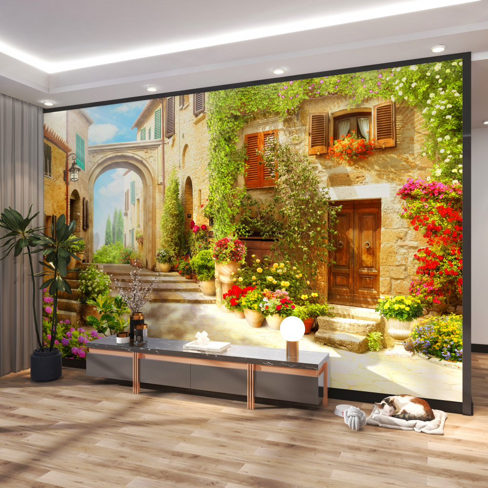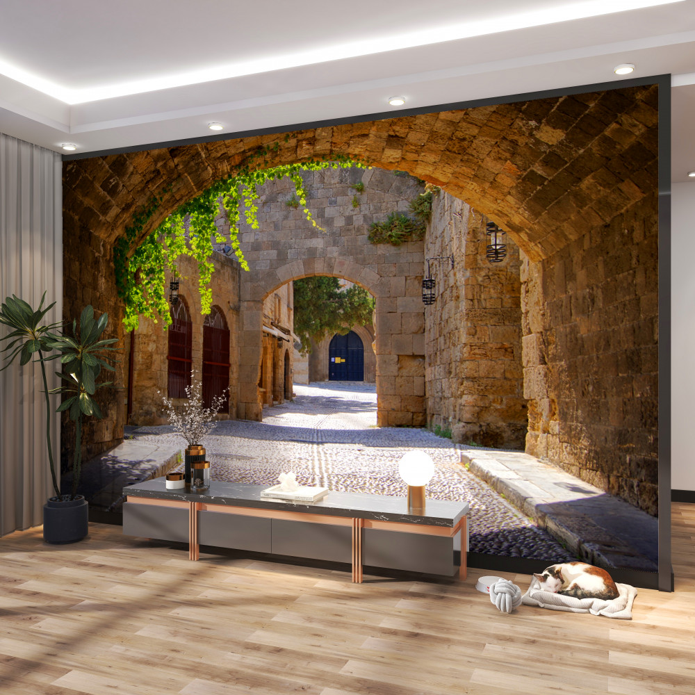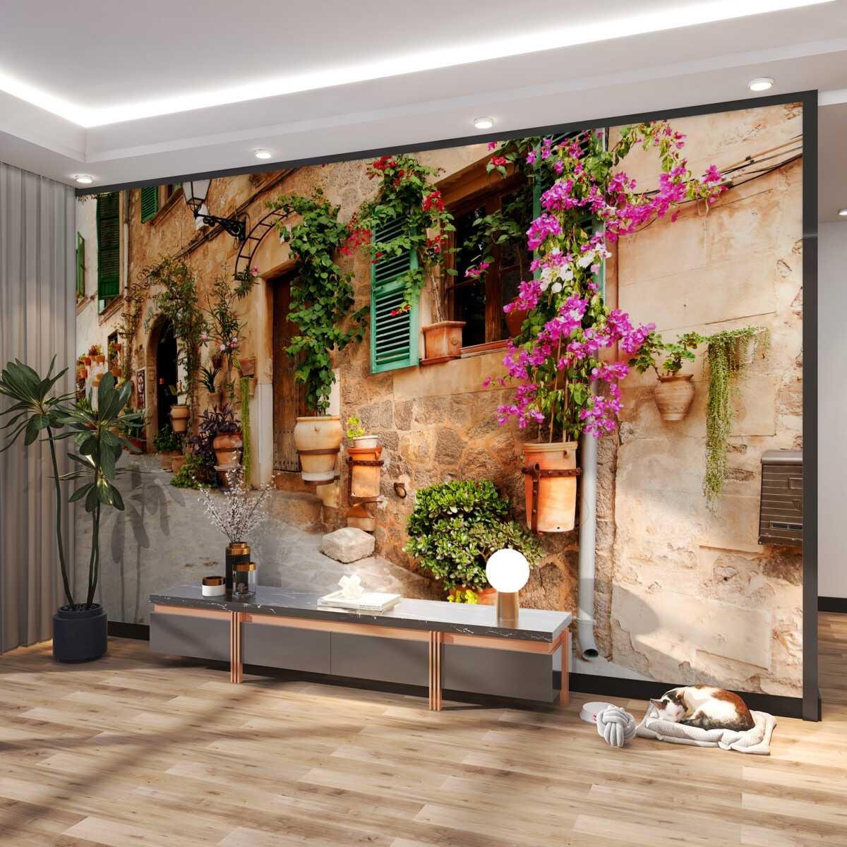 Fotobehang Gezellige weg besprenkeld met levende groen