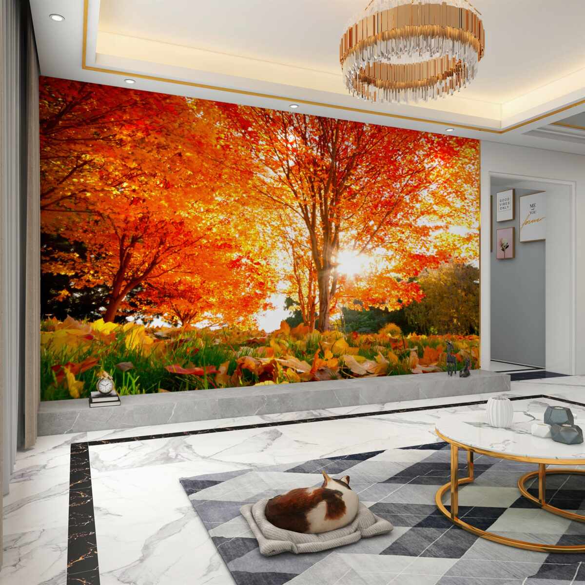 Fotobehang Een dun hoog bos op een mistige ochtend