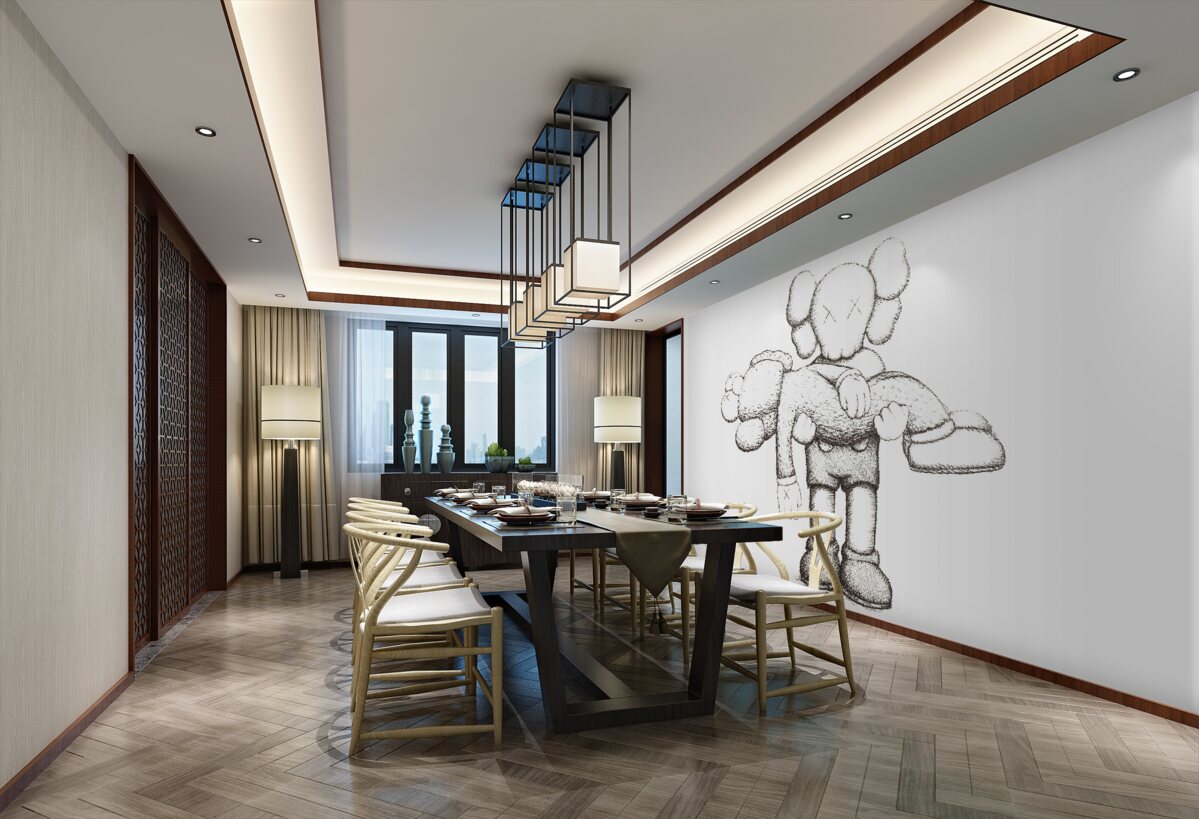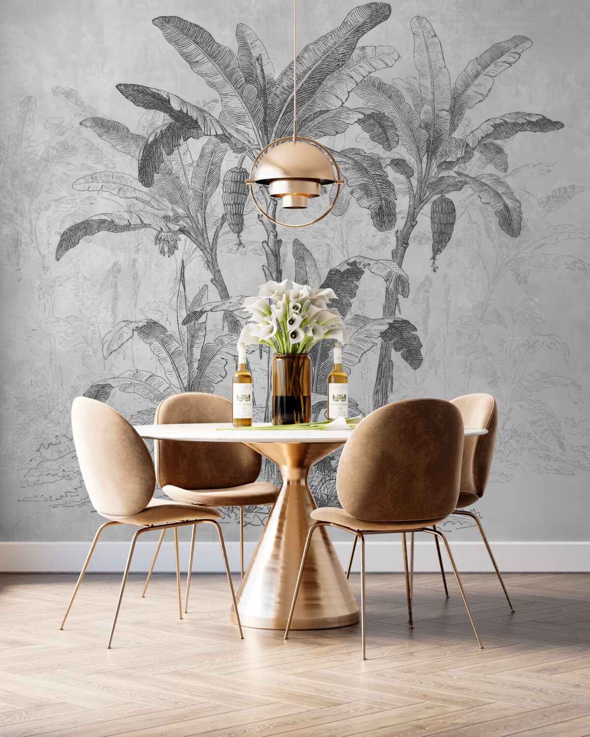 Fotobehang Gevallen bomen en vogels die in de herfst wegvliegen